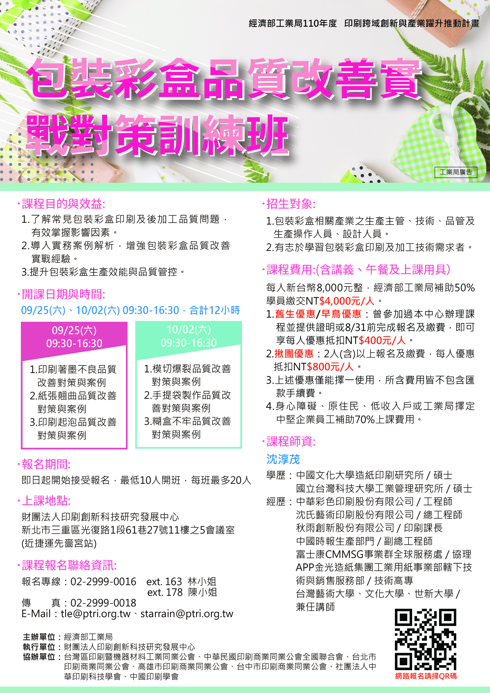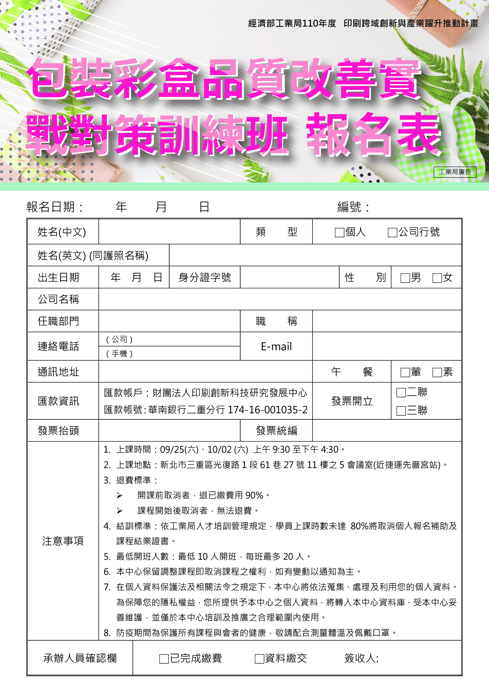●報名地點:新北市三重區光復路一段61巷27號11樓之3(印研中心)