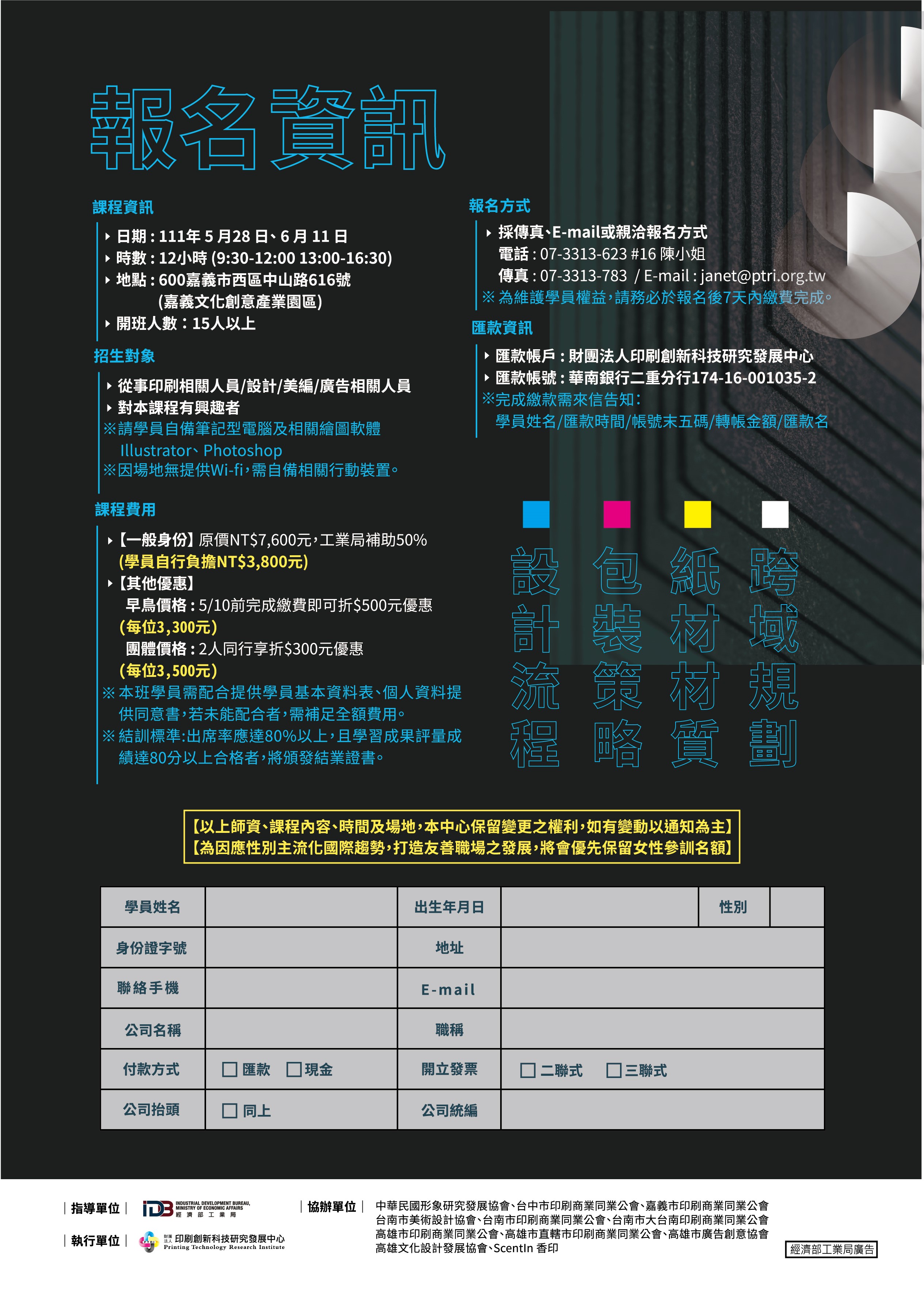 ※從事印刷相關人員/設計/美編/廣告相關人員/對本課程有興趣者