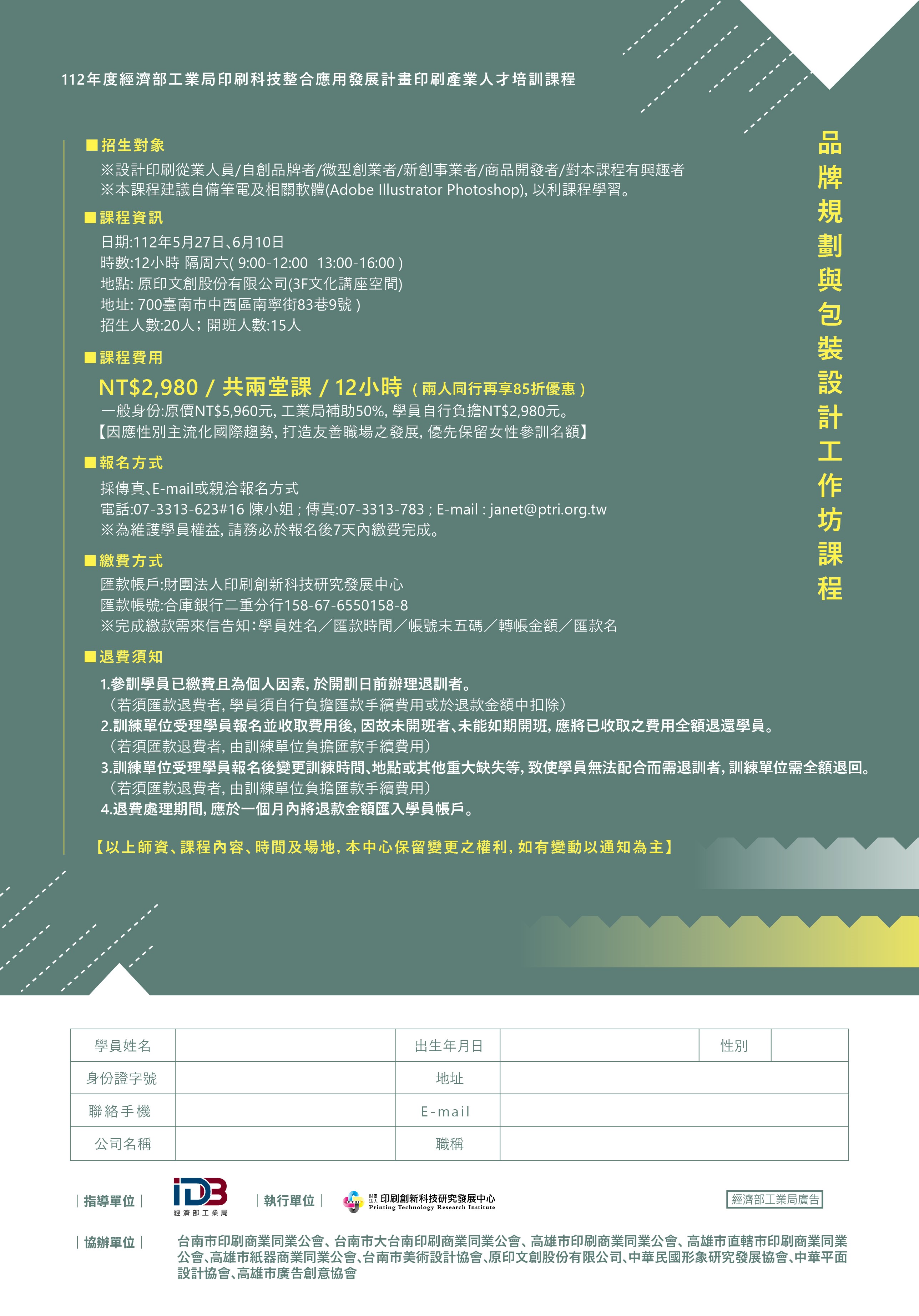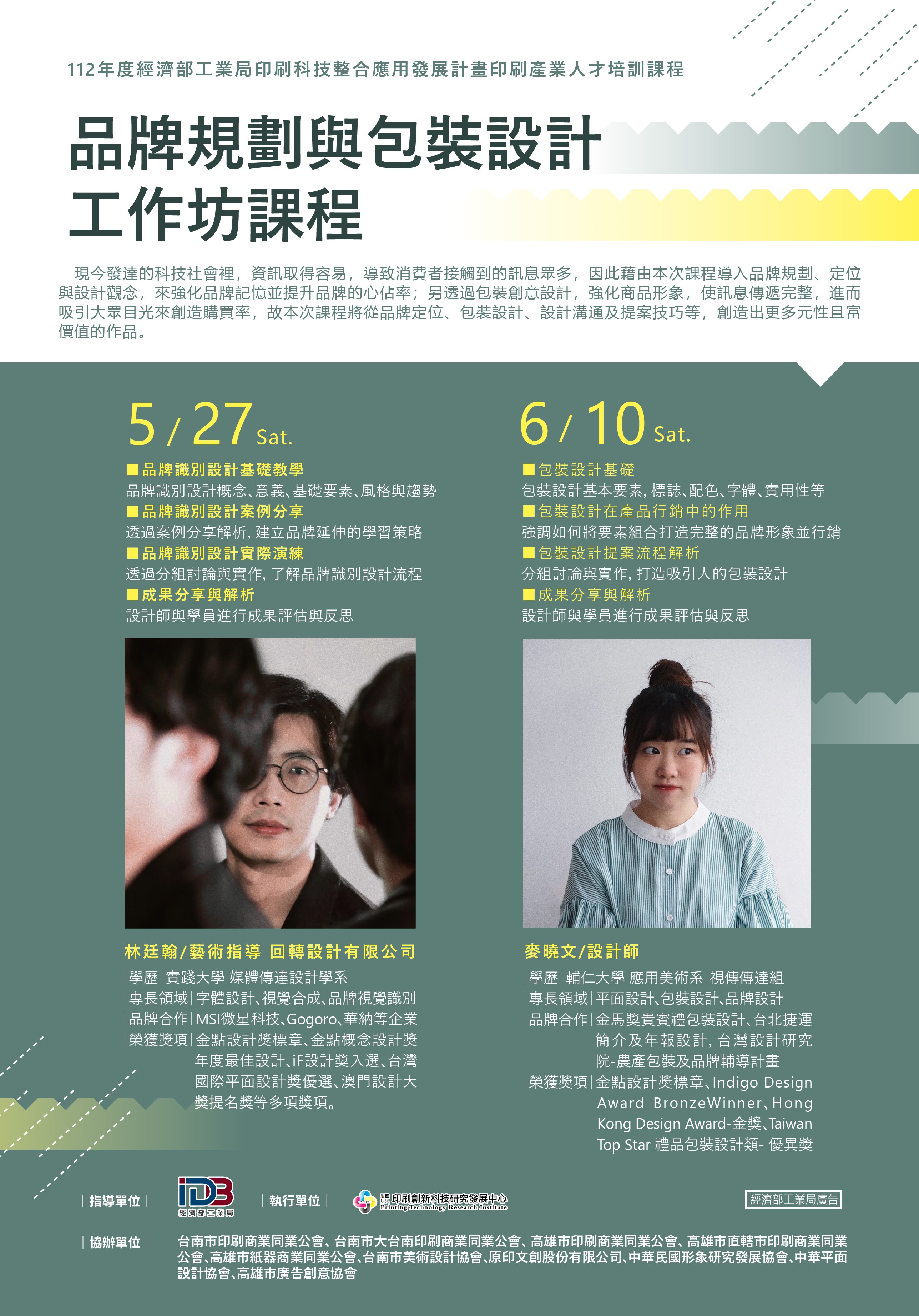 ,因此藉由本次課程導入品牌規劃、定位與設計觀念,強化品牌記憶提升品牌的心佔率;另透過包裝創意設計,強化商品形象,完整傳遞訊息,進而吸引大眾目光來創造購買率,故本課程將從品牌定位、包裝設計、設計溝通及提案技巧等,創造出更多元性且富價值的作品。