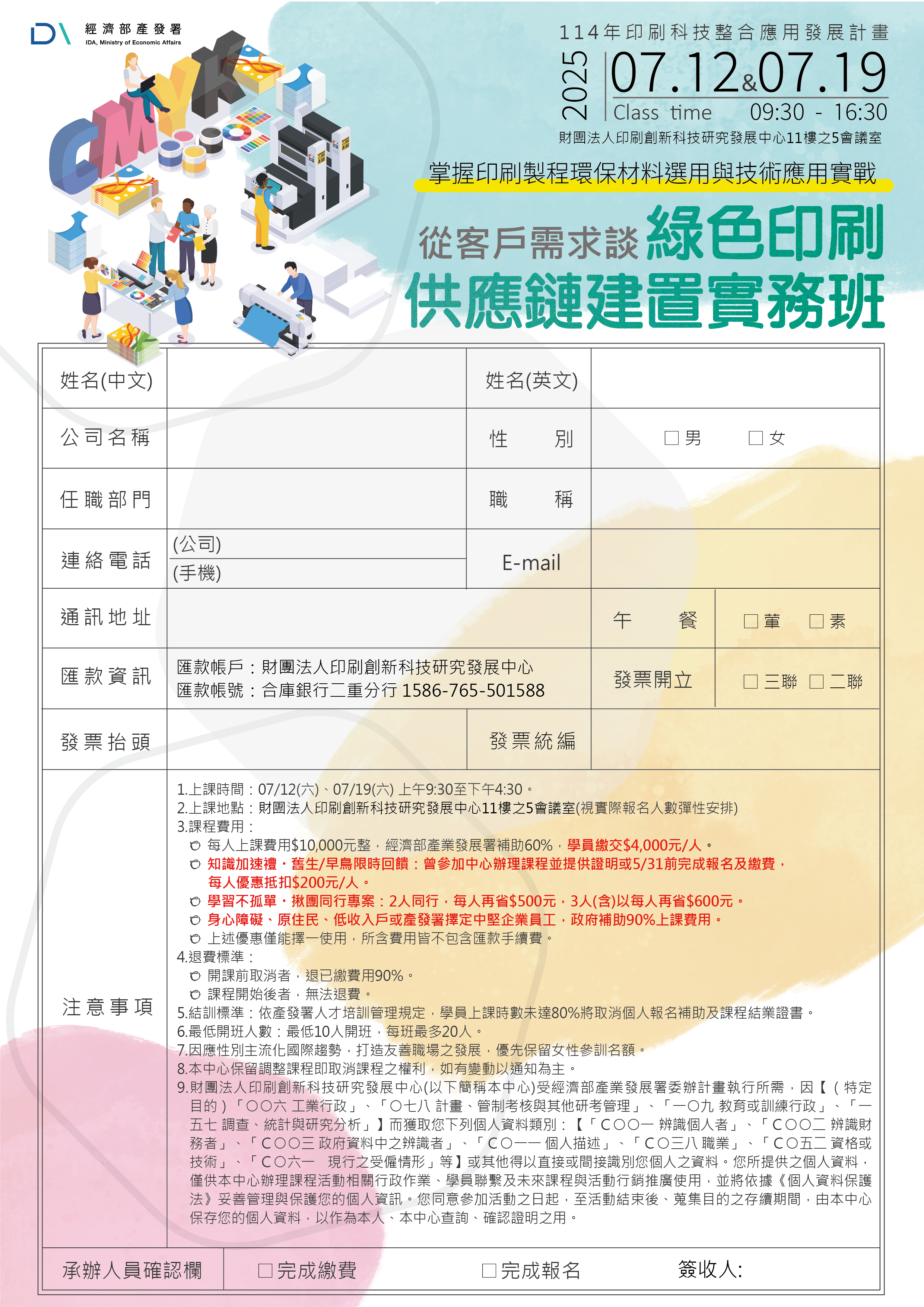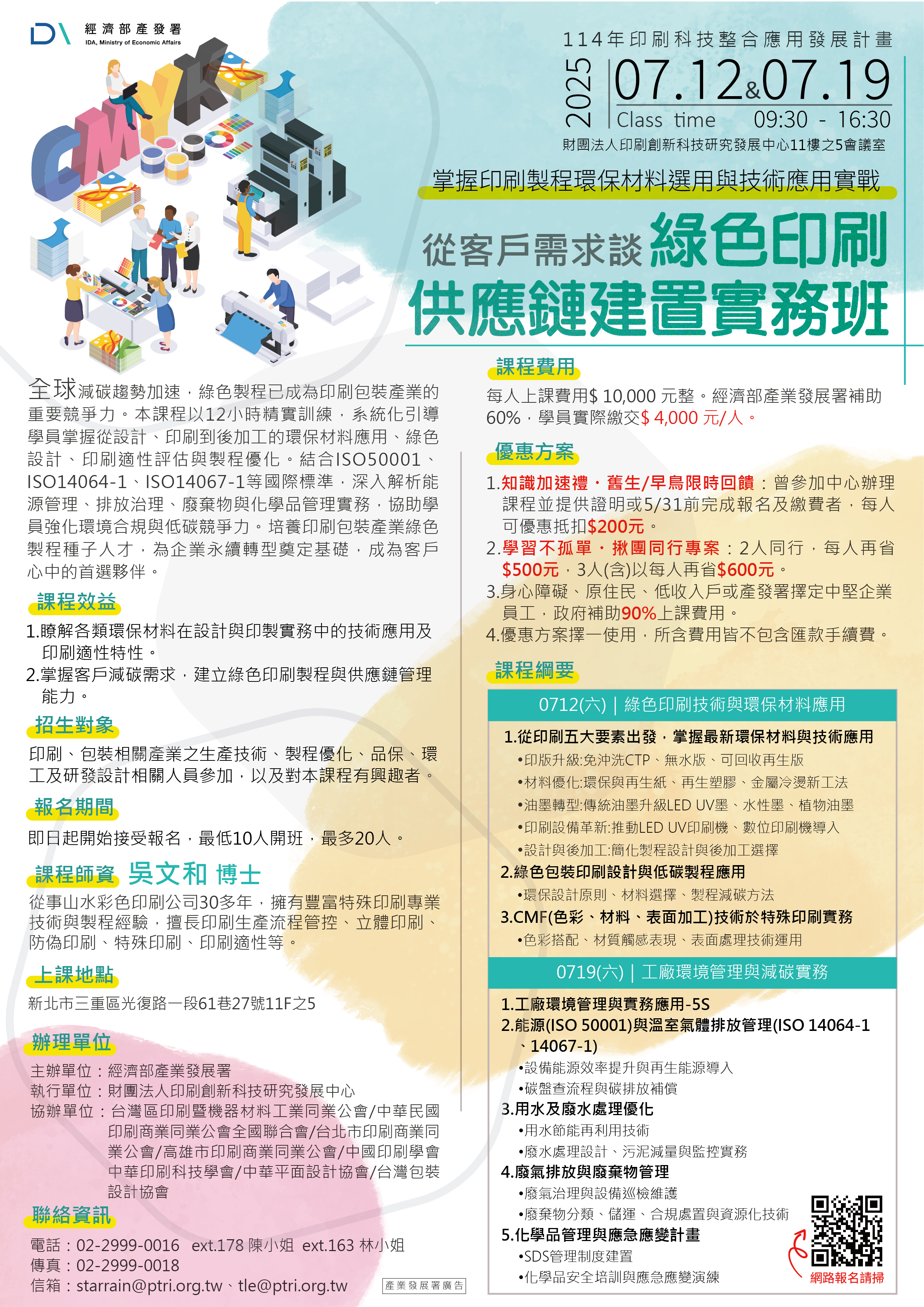 【經濟部產發署人培課程】114/7/12、7/19「從客戶需求談綠色印刷供應鏈建置實務班」熱烈招生中!掌握印刷製程環保材料選用與技術應用實戰,歡迎踴躍報名參加!