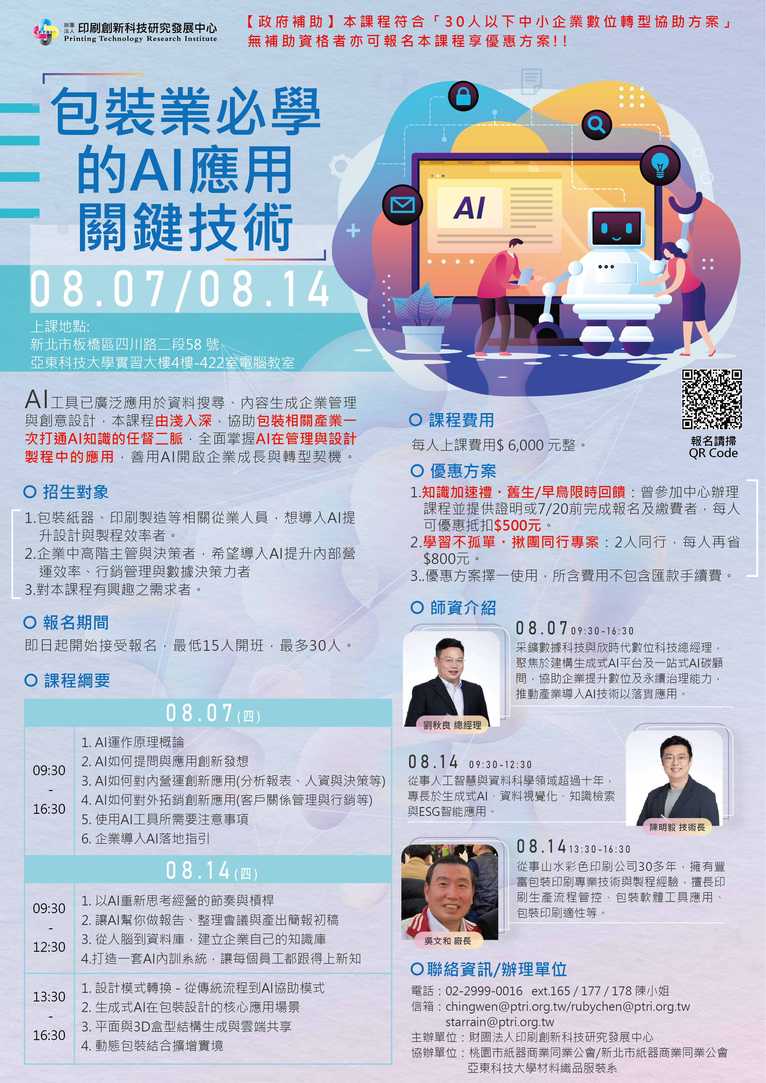 上課時間:114年08月07日(四)、114年08月14日(四)09:30-16:30 (12小時,共2天)