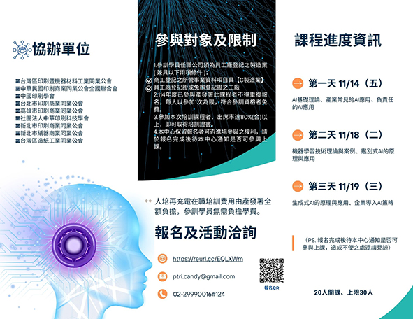 114.11.14(五)、18(二)、19(三) 09:30-16:30「AI三日種子班」