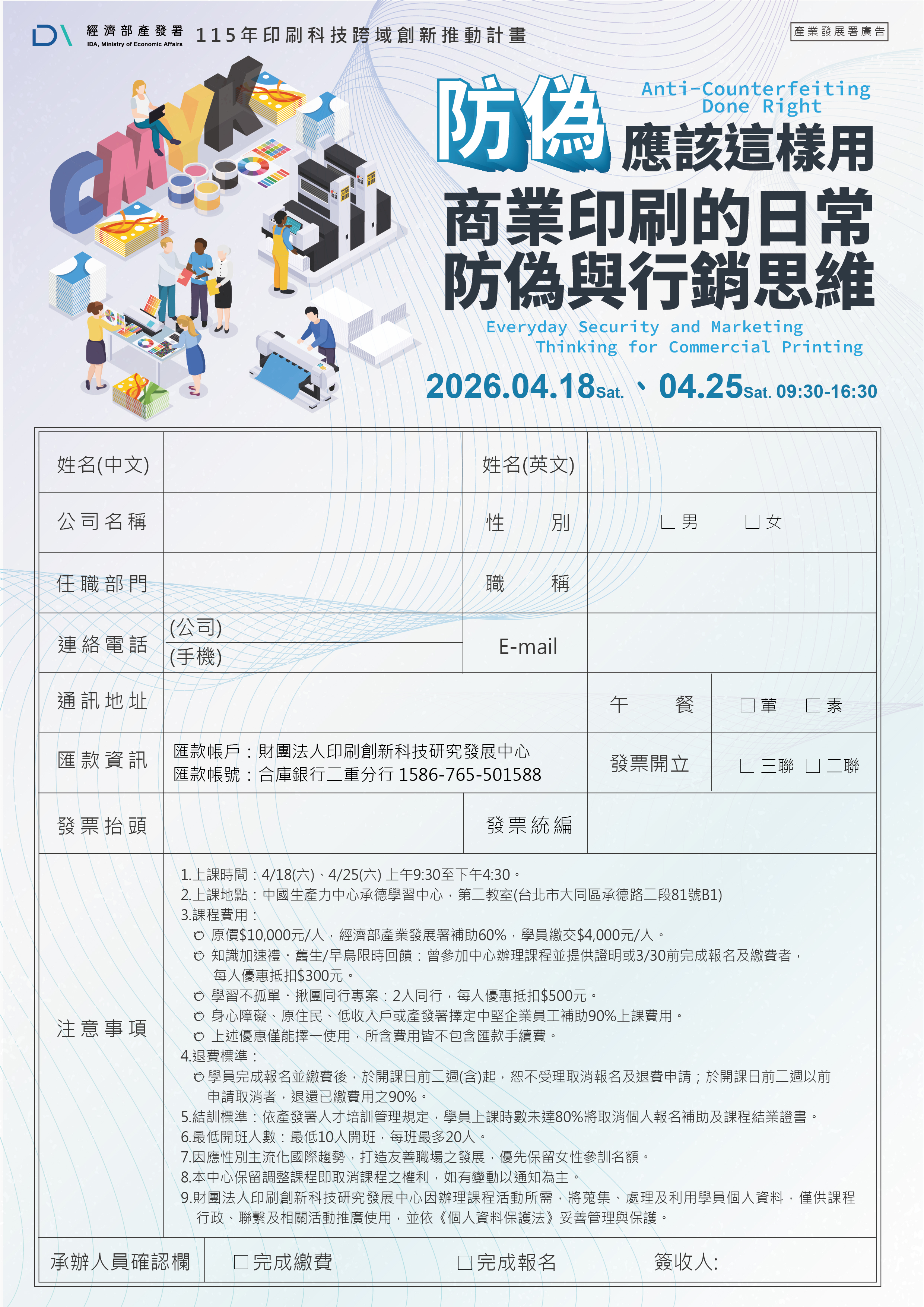 115/4/18、4/25「防偽應該這樣用-商業印刷的日常防偽與行銷思維課程」