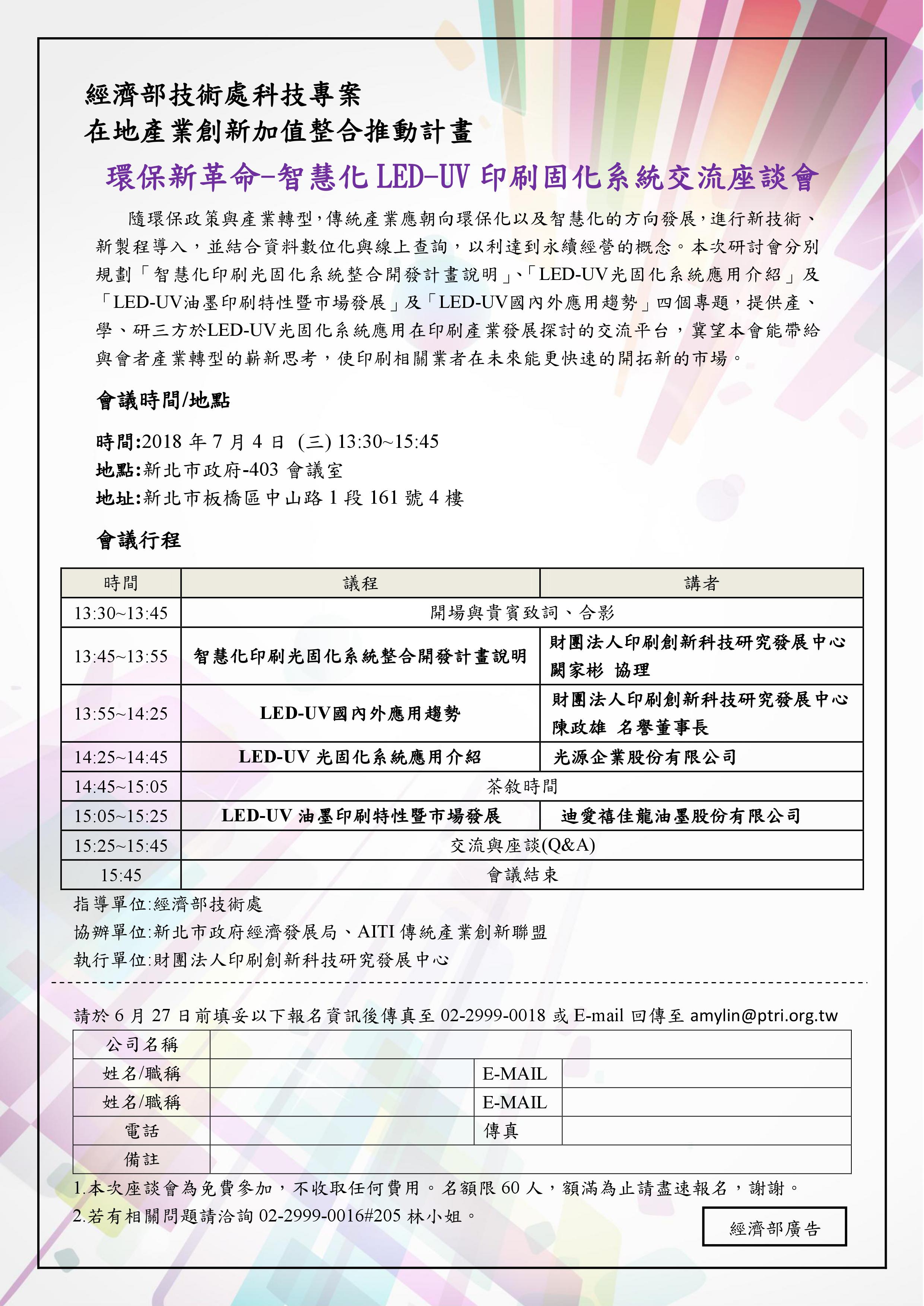 環保新革命-智慧化LED-UV印刷固化系統交流座談會
