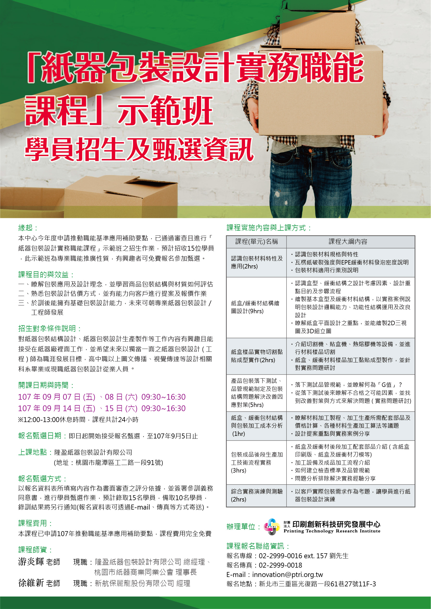 「紙器包裝設計實務職能」課程,學員甄選活動