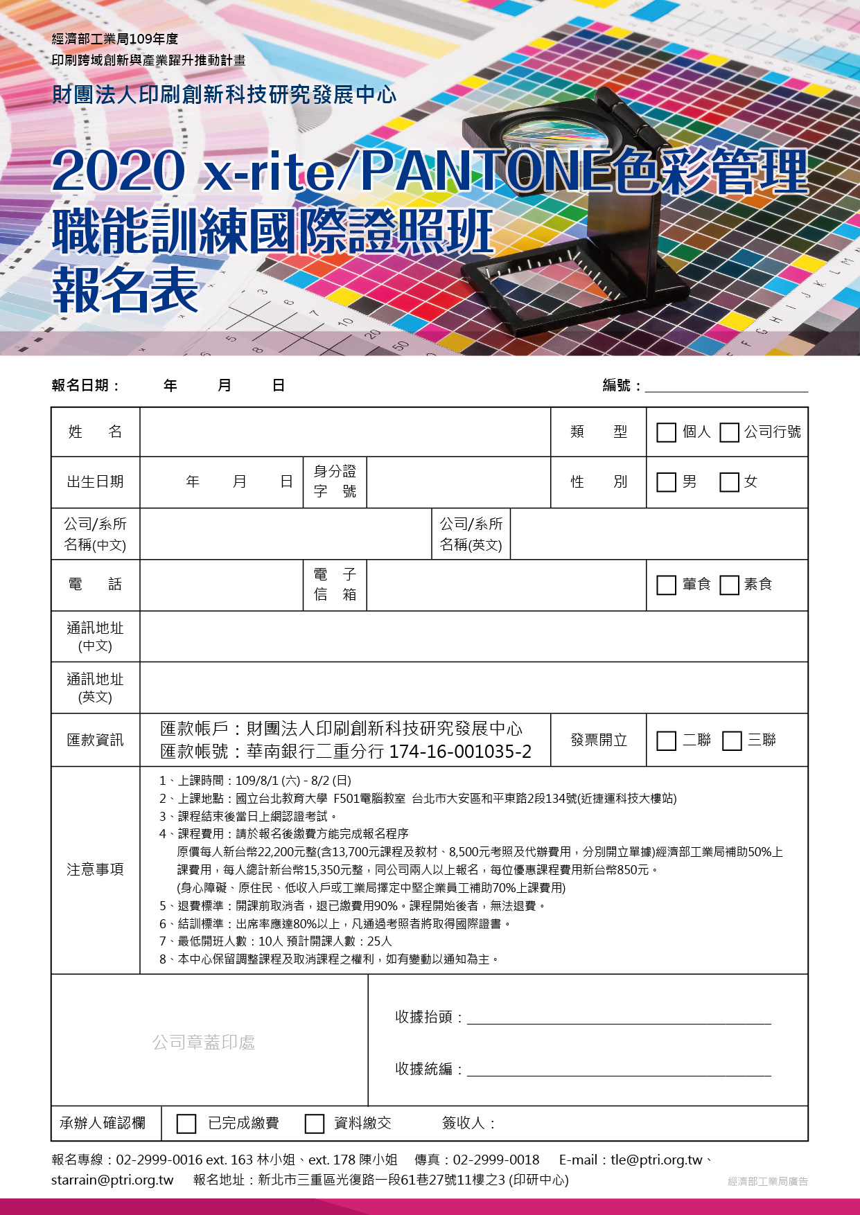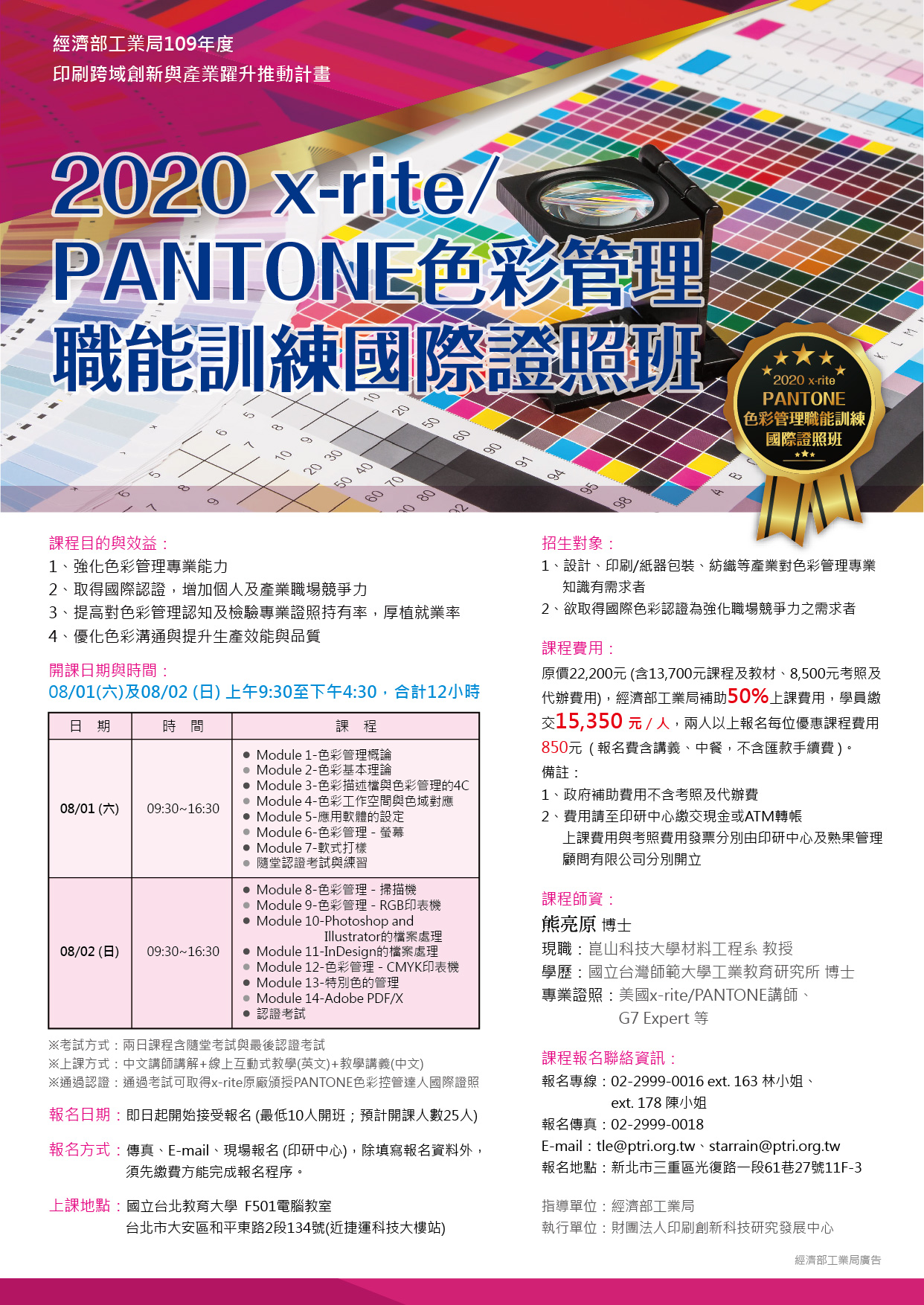 109/08/01(六)-109/08/02(日)辦理2020 x-rite-PANTONE色彩管理職能訓練國際證照班